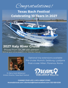 Be a part of something extraordinary as Texas Bach Festival celebrates ten years with a Dream Vacations Italy River Cruise in 2027!